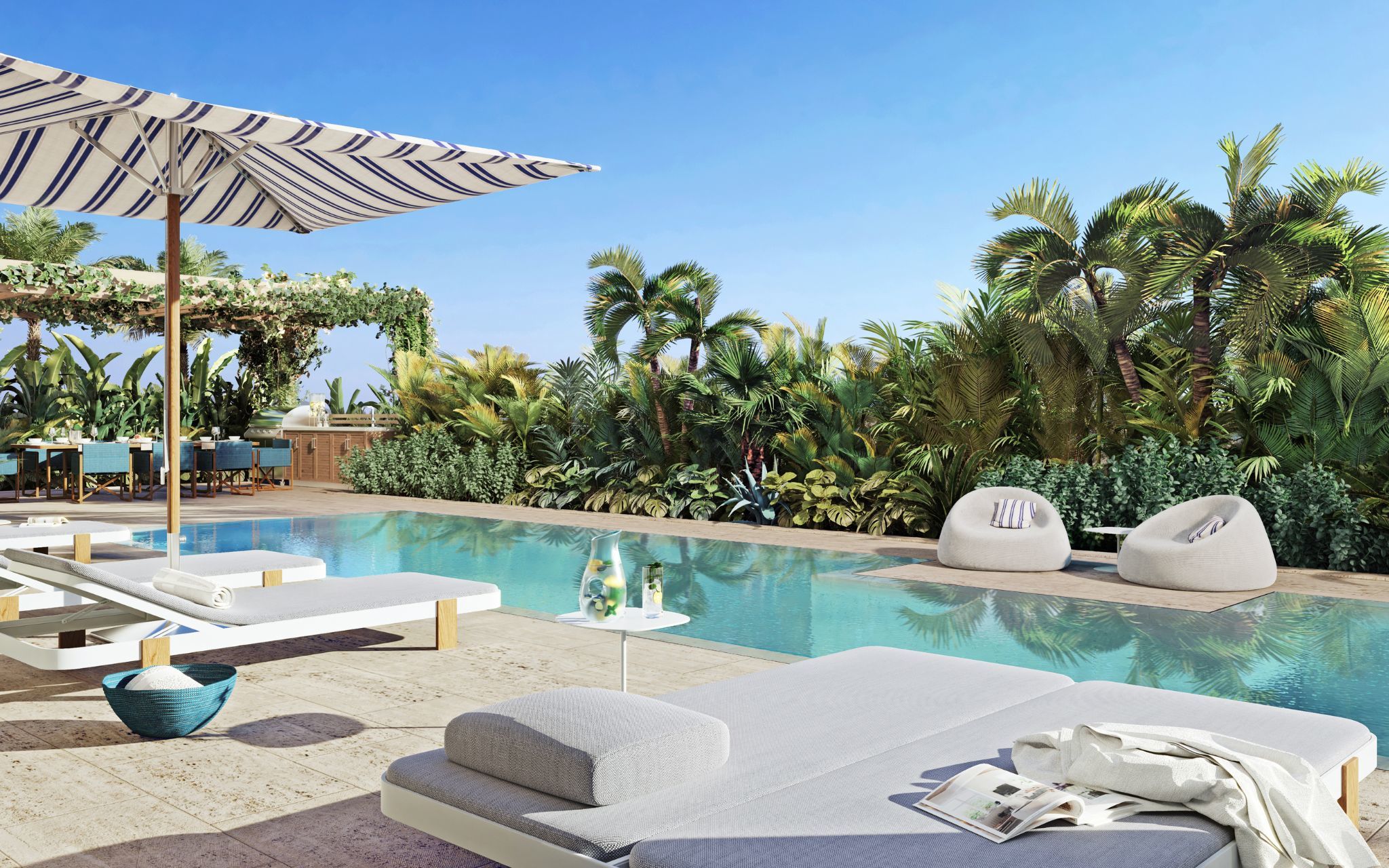 - Poolside summer kitchen and outdoor dining