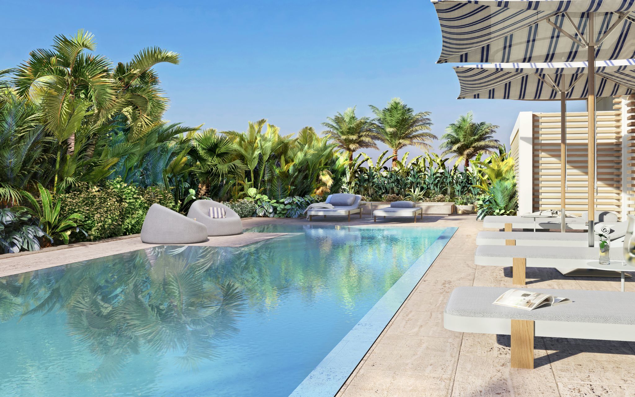 - 36' pool with Italian designed poolside chaise lounges