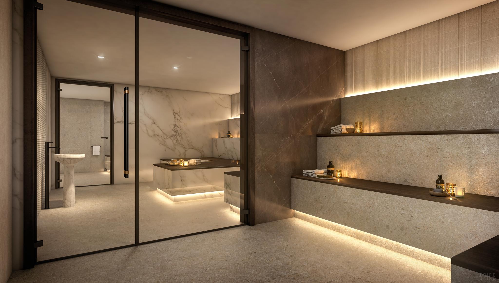 - Spa and wellness center with treatment room, Hammam, hydrotherapy plunge pools