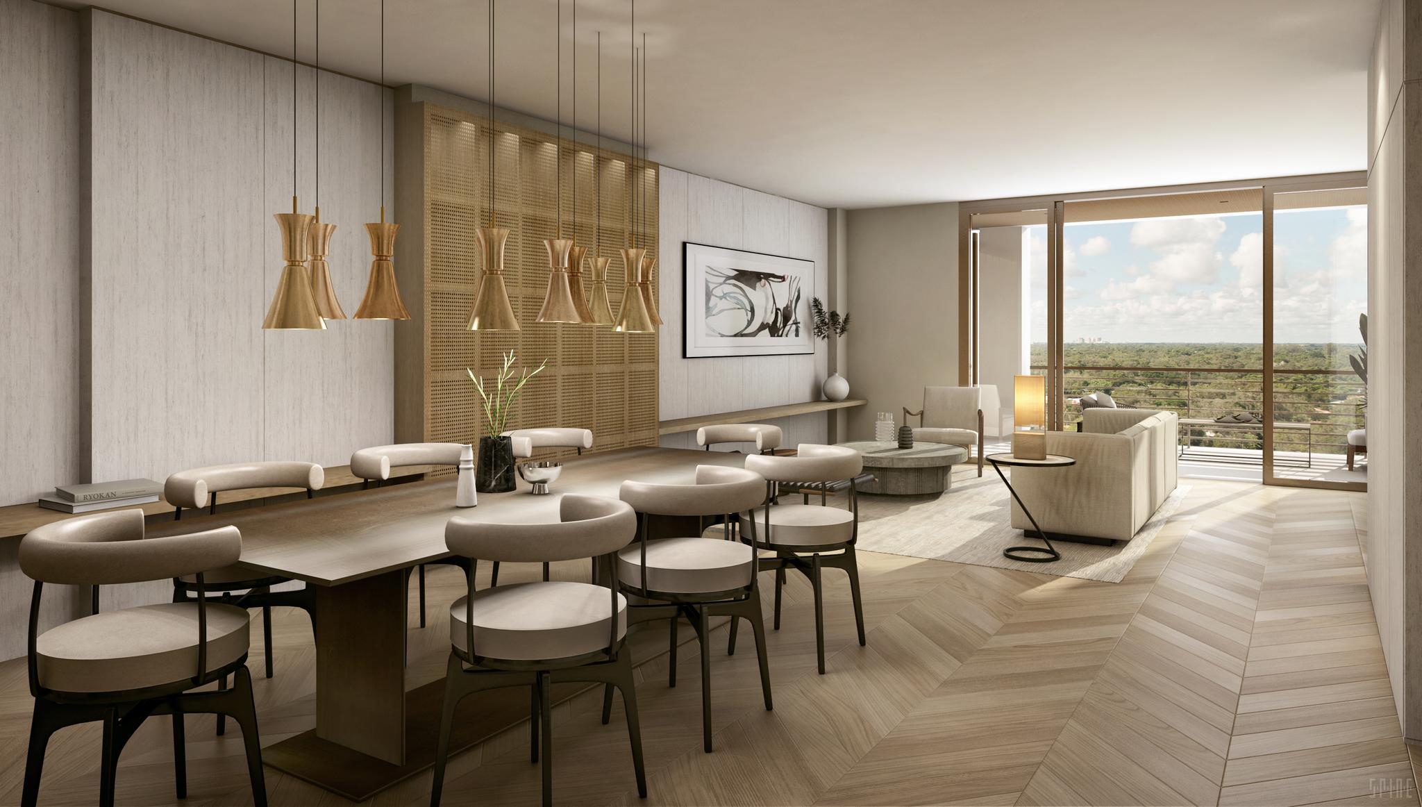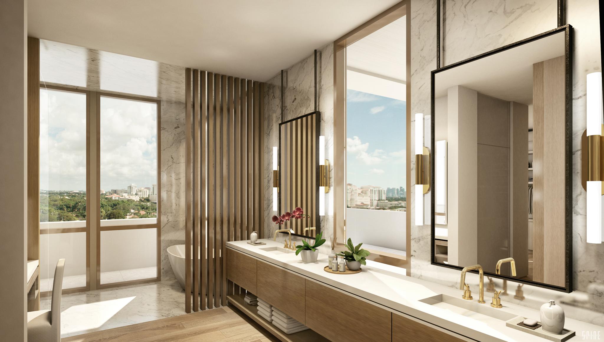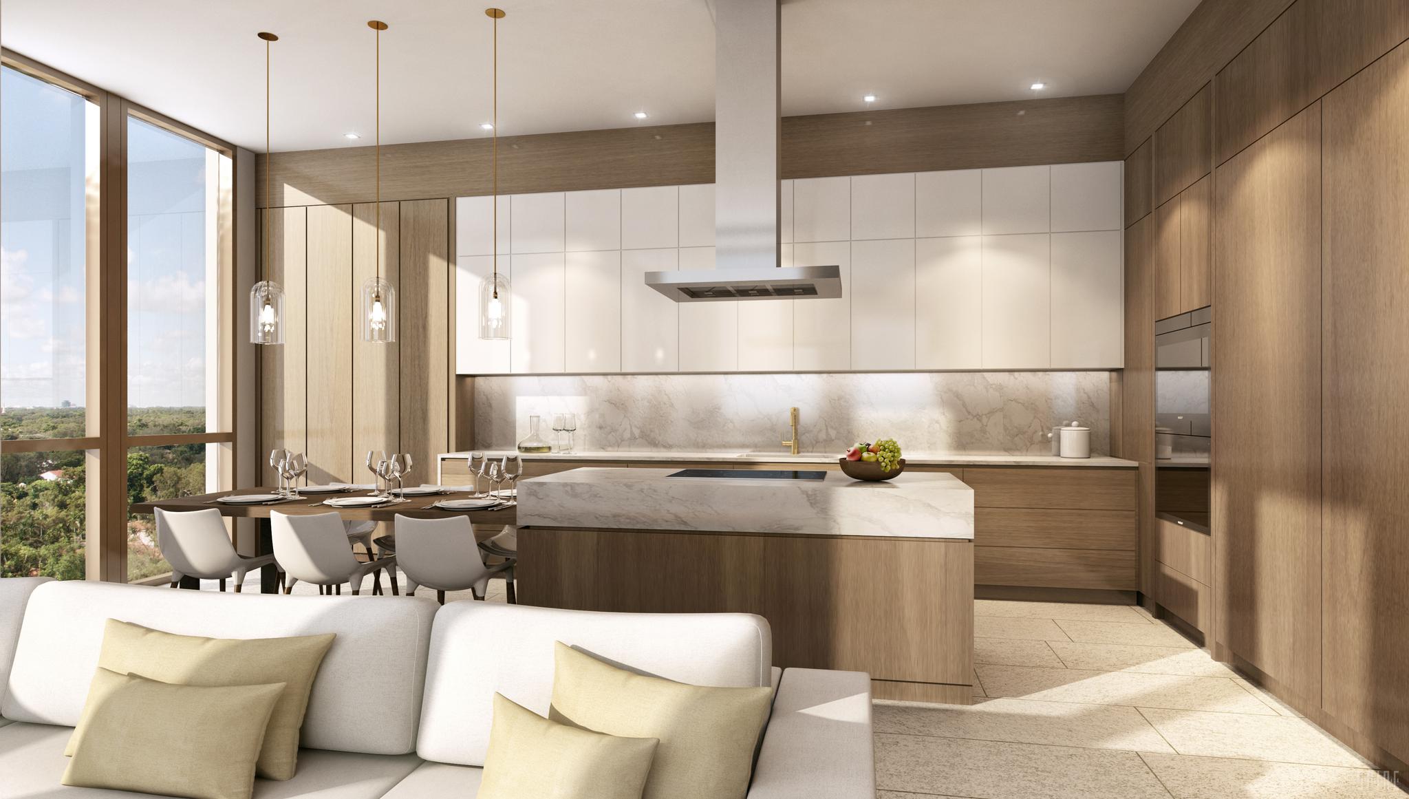 A thoughtfully designed outer facade, keeping in line with the Mediterranean-Spanish design style of the city, makes Villa Valencia a stunning high-rise to look at in the Coral Gables skyline. Each home is its own private sanctuary, with private elevators, expansive floorplans, and residence features designed to promote well-being. Despite the old world architecture on the outside of the building, the interior design of each residences is of the highest level of craftsmanship, combining state-of-the-art modern home features with European design aspects. Each home was positioned so every unit has a corner exposure, allowing residents to have expansive views of the adjacent greenery and city from whichever unit they reside in.